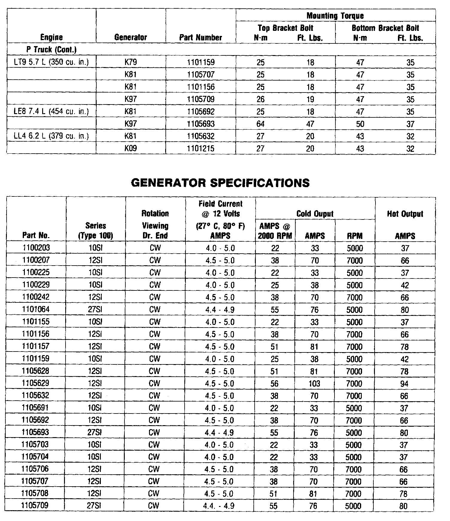 Starting and Charging: Specifications