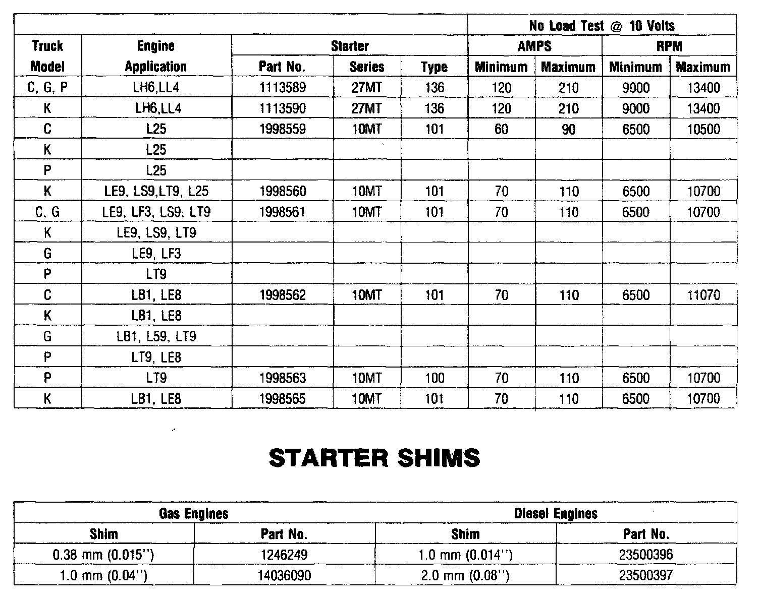 STARTER SPECIFICATIONS