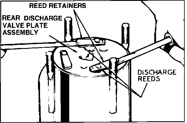 15. Remove front discharge valve assembly and front suction reed plate.