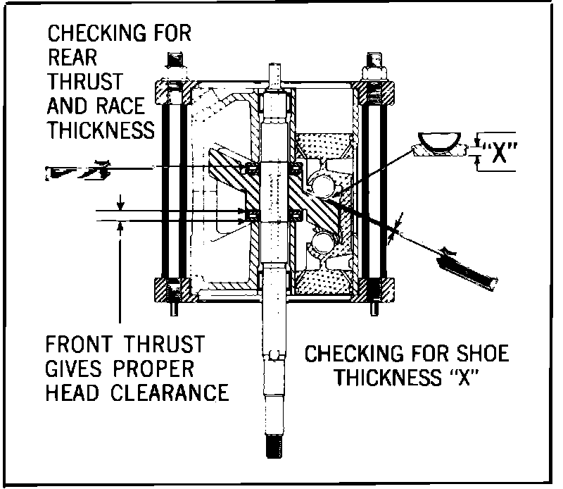 25. Remove rear outer zero thrust race from shaft and install thrust race previously selected.