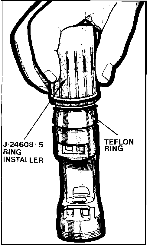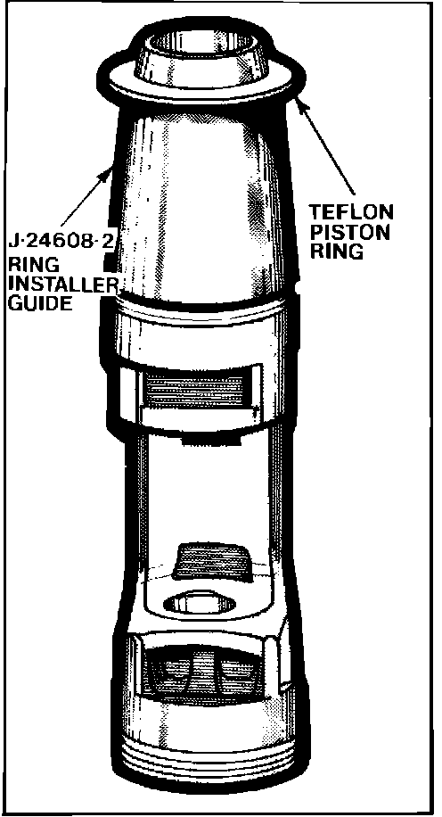 8. Repeat above procedure on opposite end of piston. Do not place piston down on a dirty surface where dirt or metal chips can become imbedded in Teflon ring.