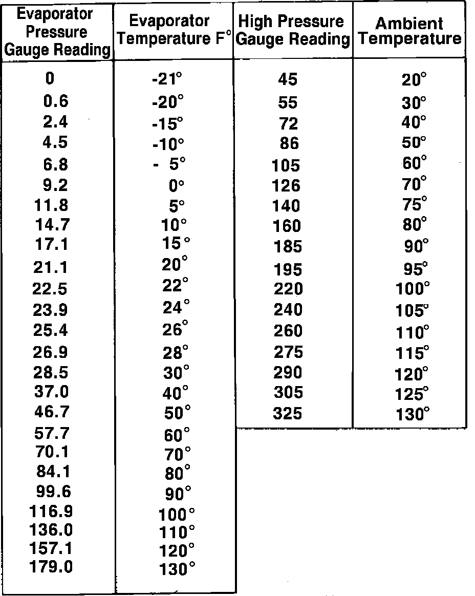 The high side pressure will definitely be affected by the ambient or outside air temperature. A system that is operating normally will indicate a high side gauge reading between 150 to170 psi with an 80°F ambient temperature. The same system will register 210 to 230 psi with an ambient temperature of 100°F. No two systems will register exactly the same, which requires that allowance for variations in head pressures must be considered. Following are the most important normal readings likely to be encountered during the season.