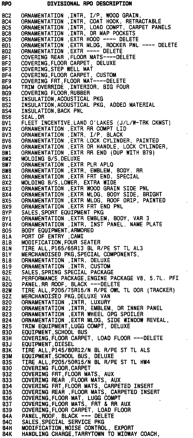 List of Regular Production Option (RPO) Codes