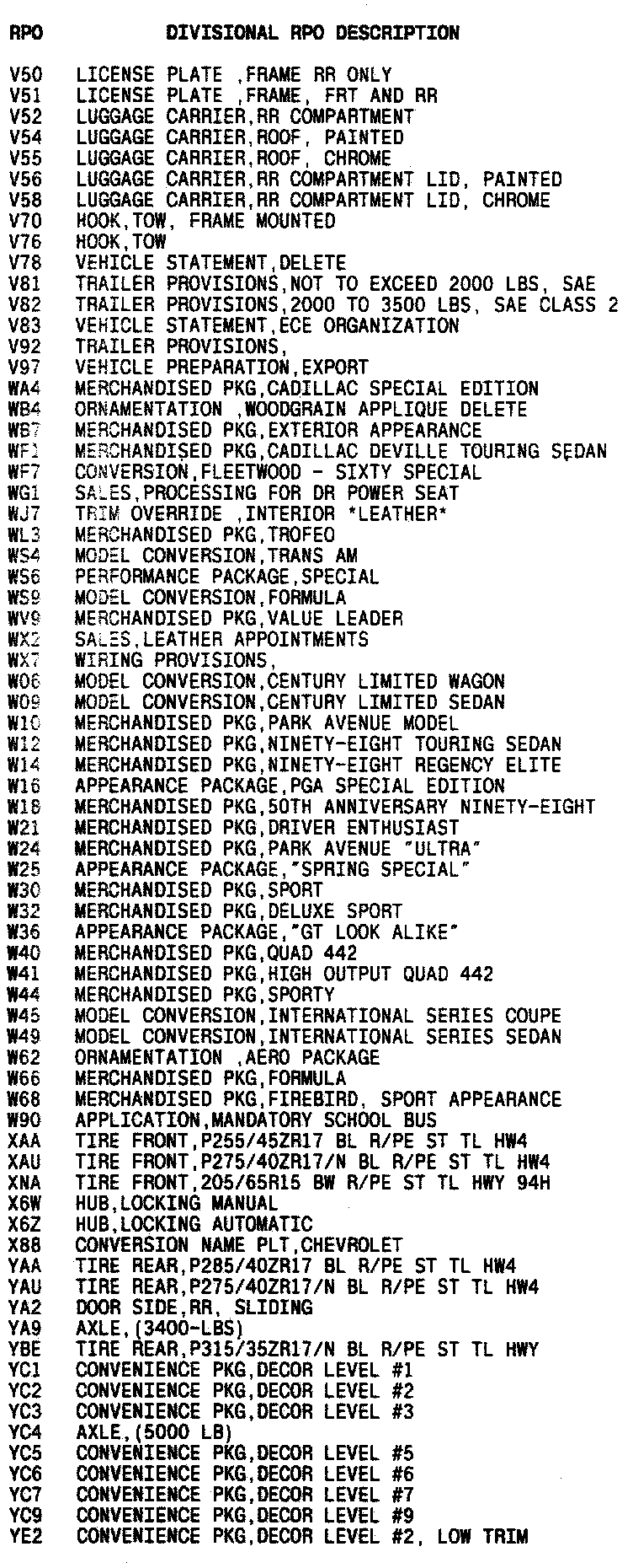 List of Regular Production Option (RPO) Codes
