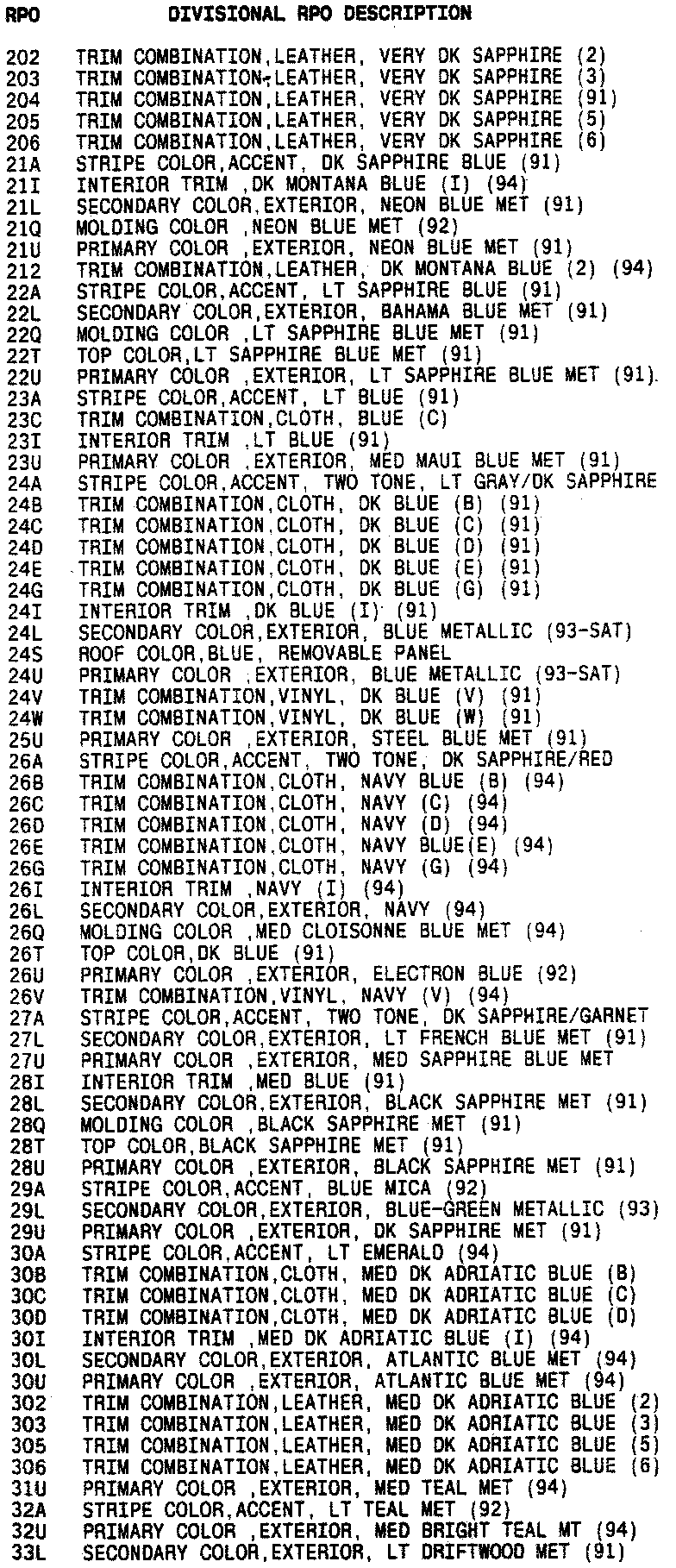List of Regular Production Option (RPO) Codes