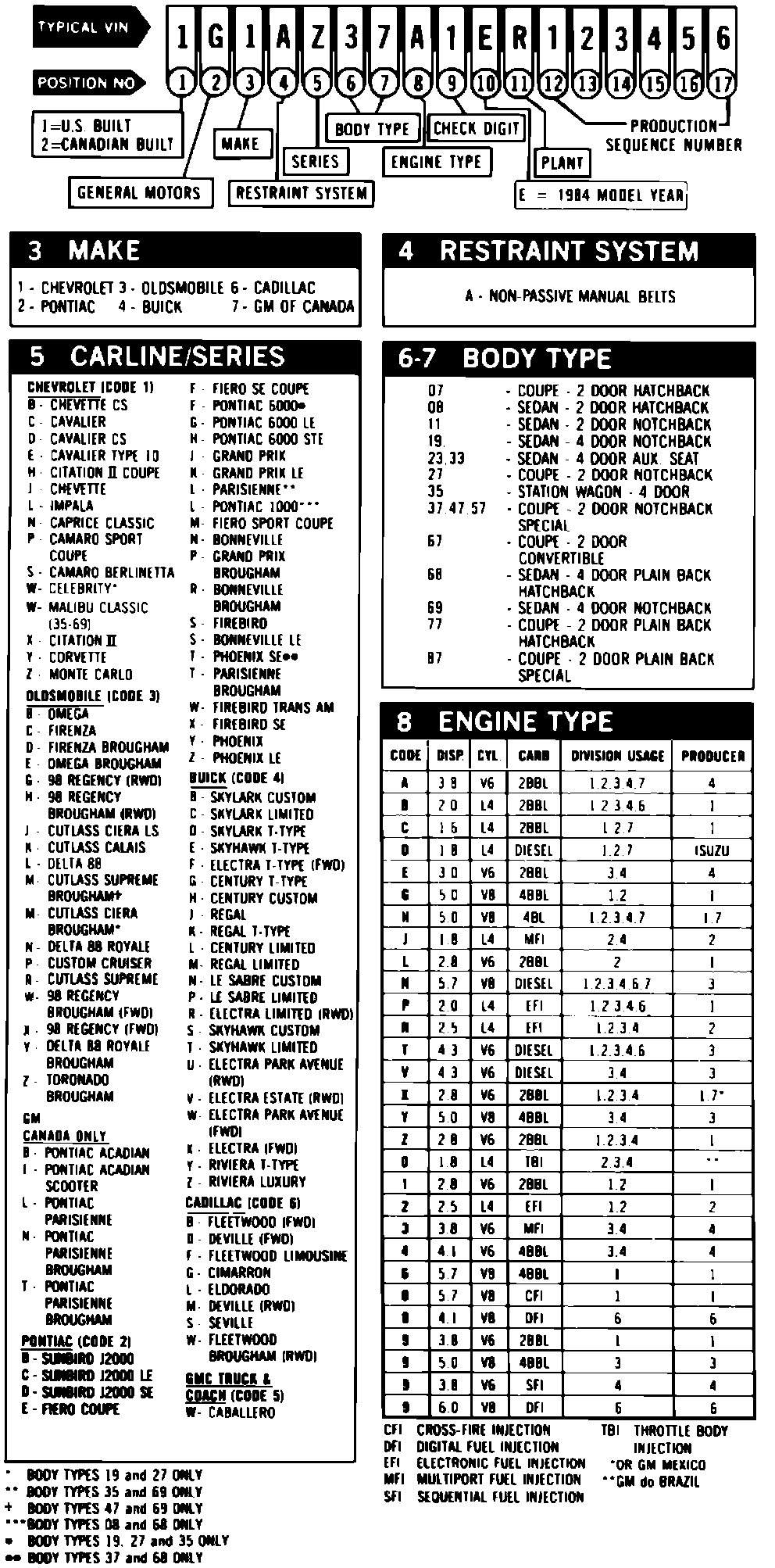 GM Automobile VIN Charts
