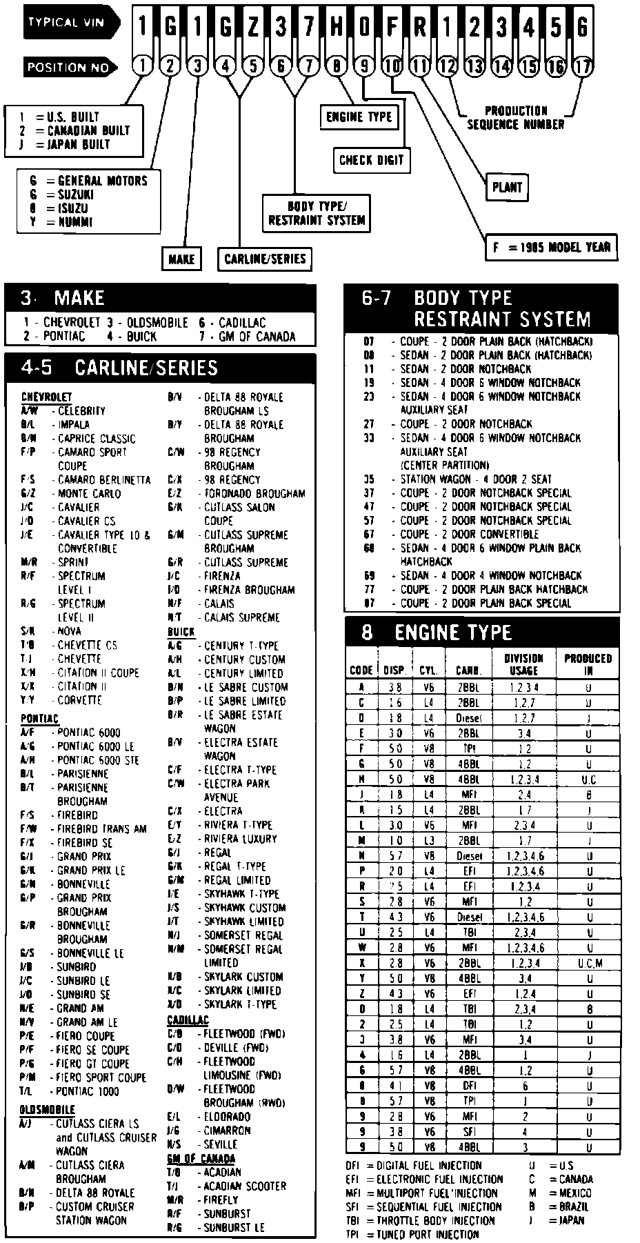 GM Automobile VIN Charts