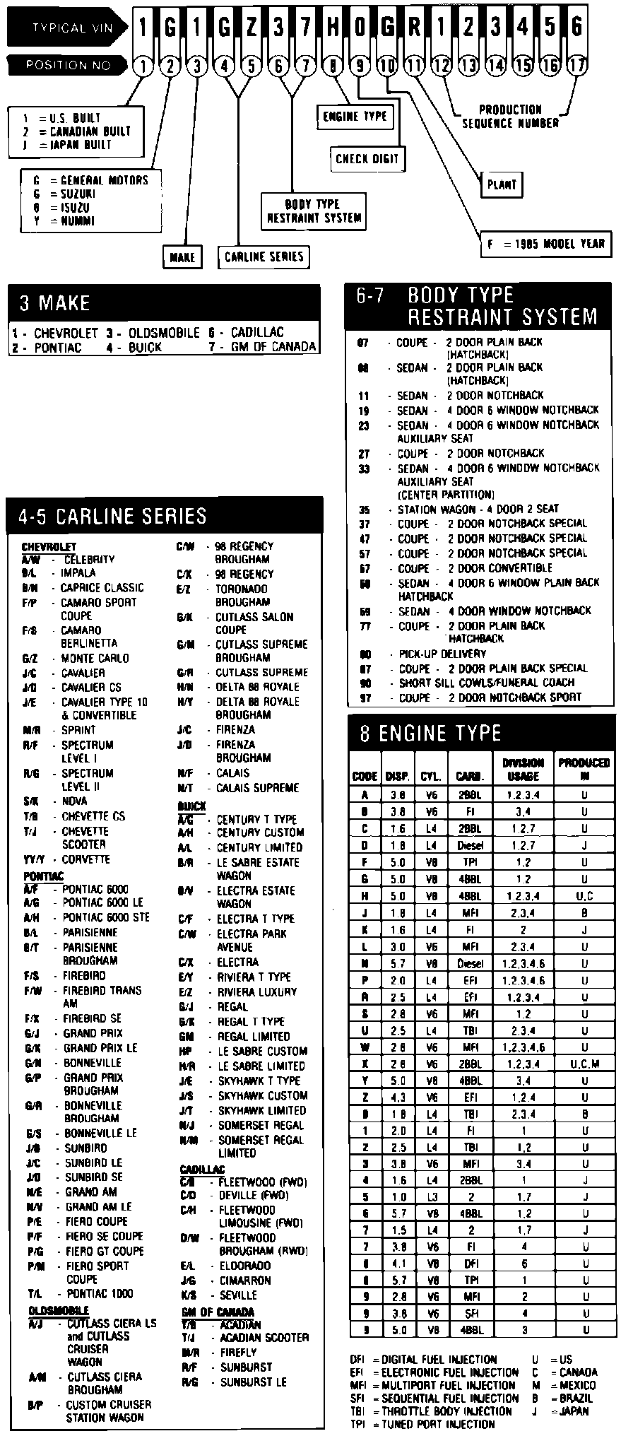 GM Automobile VIN Charts