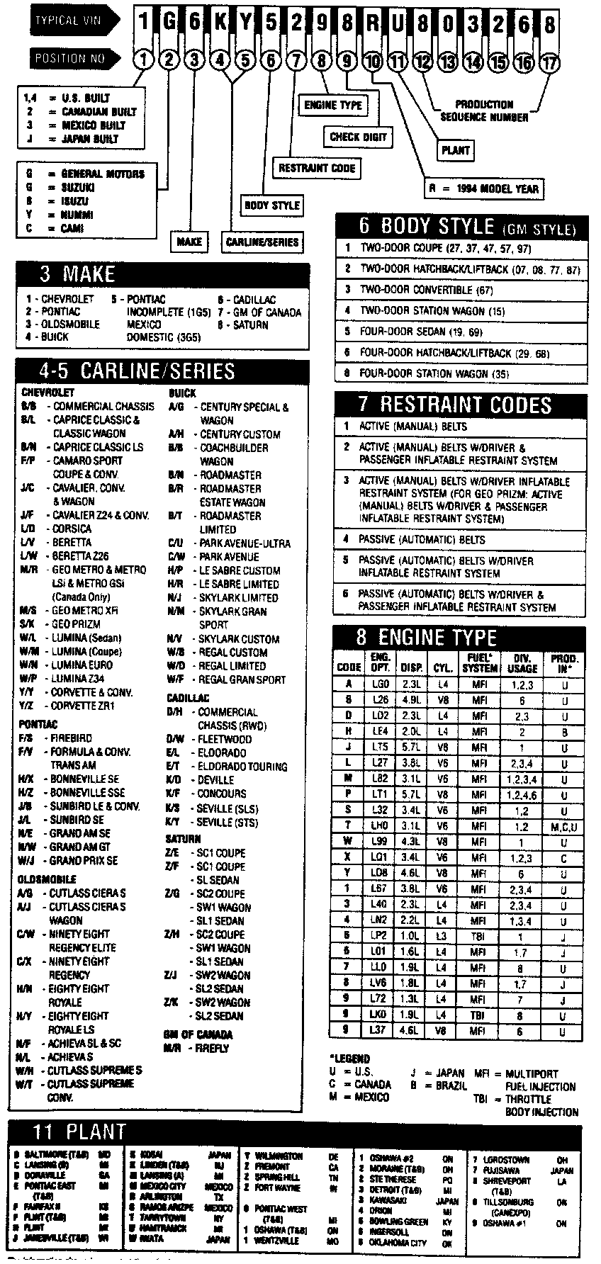 GM Automobile VIN Charts