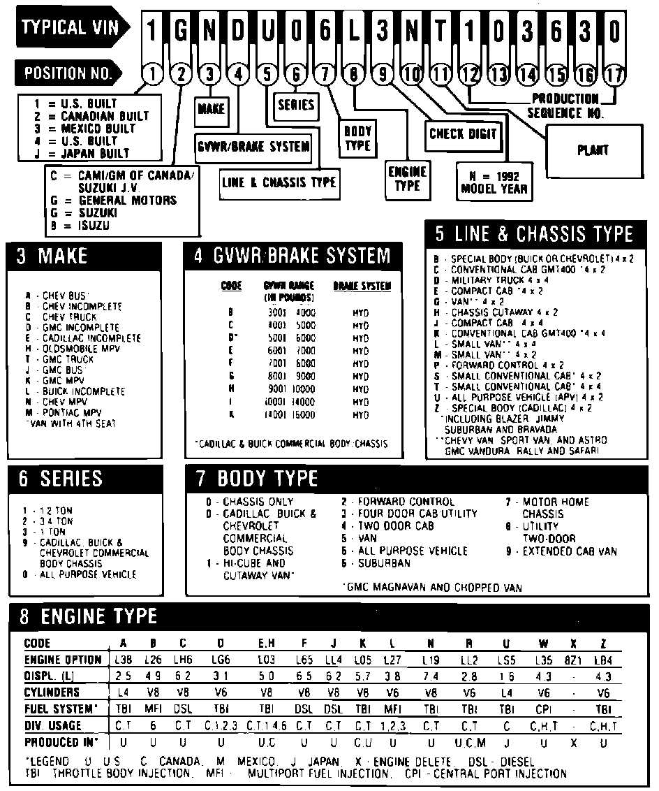 GM Light Duty & Multi-Purpose Truck VIN Charts