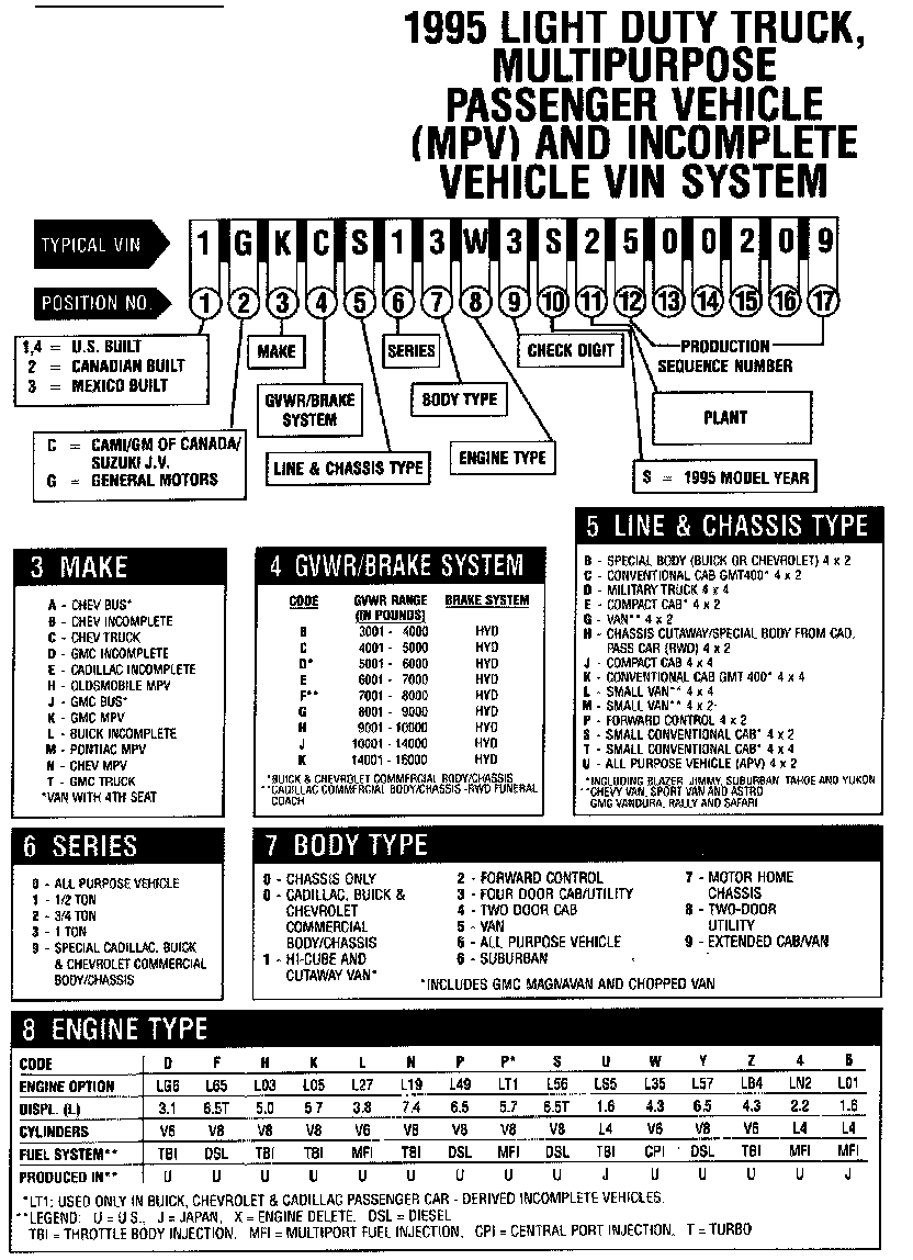 GM Light Duty & Multi-Purpose Truck VIN Charts