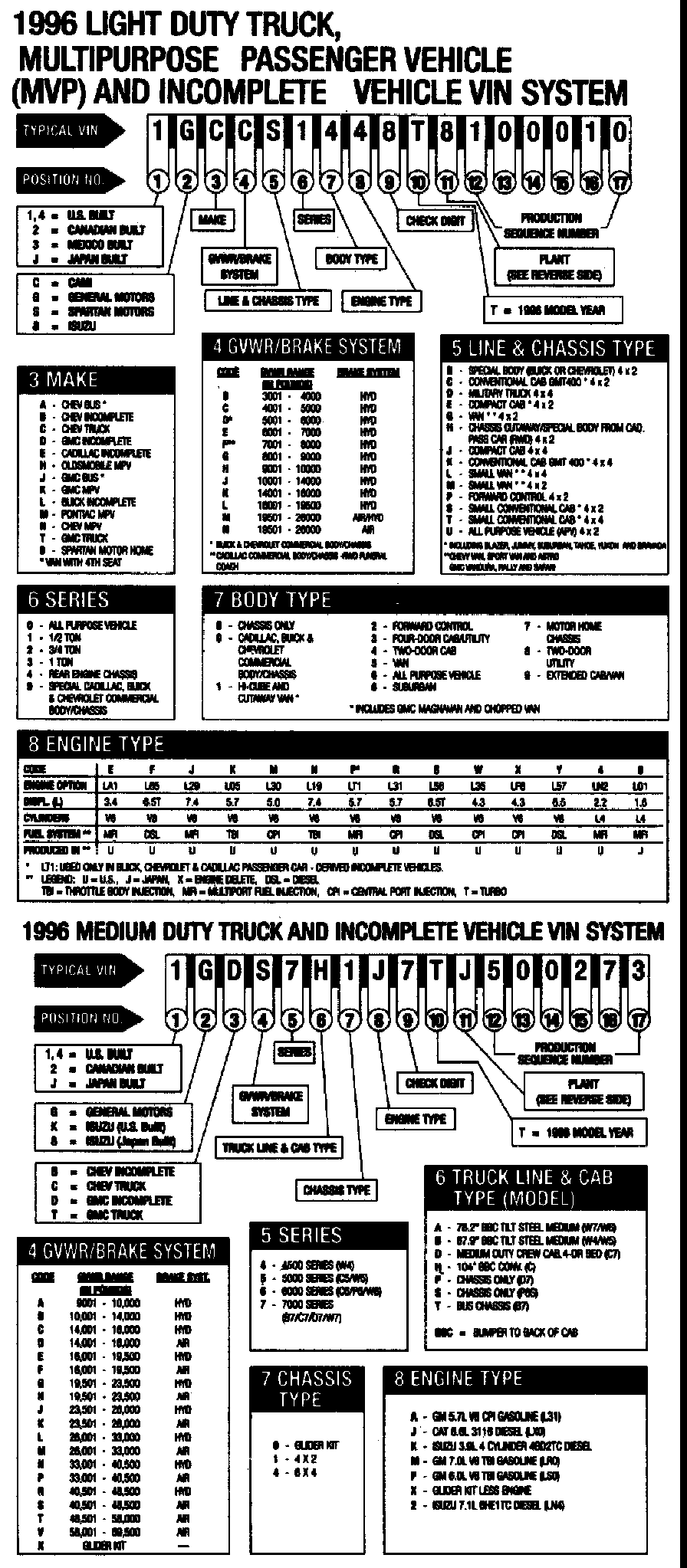 GM Light Duty & Multi-Purpose Truck VIN Charts