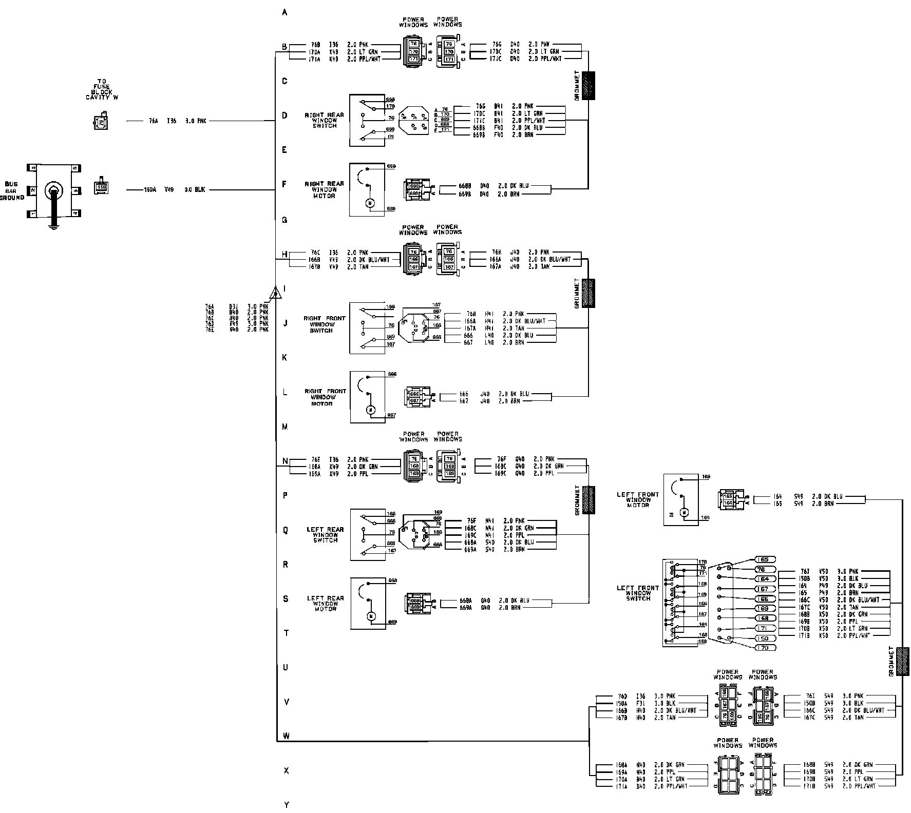 Power Window Wiring Circuit (4 Door) Less Power Door Locks:
