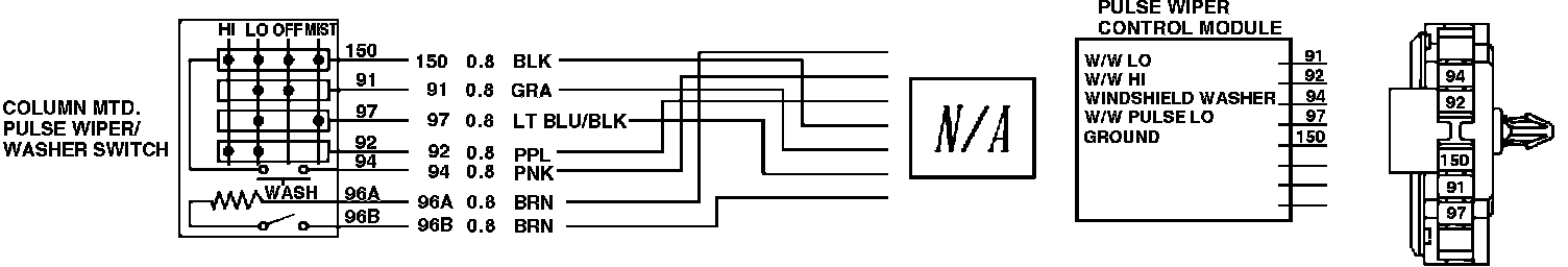 Wiper Switch & Control Module Wiring Circuit W/Pulse Wipers: