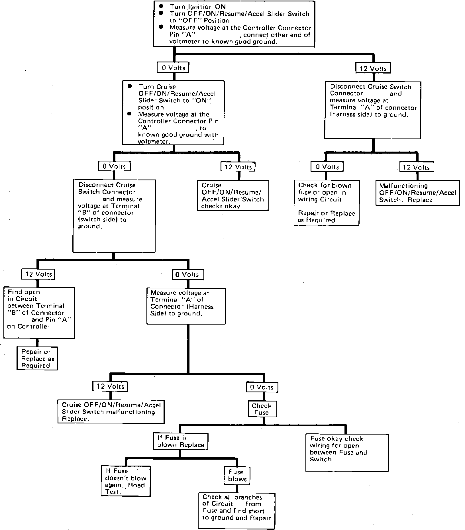 Fig. 15 On/Off/Resume/Accel switch diagnostic chart. Custom Cruise III:
