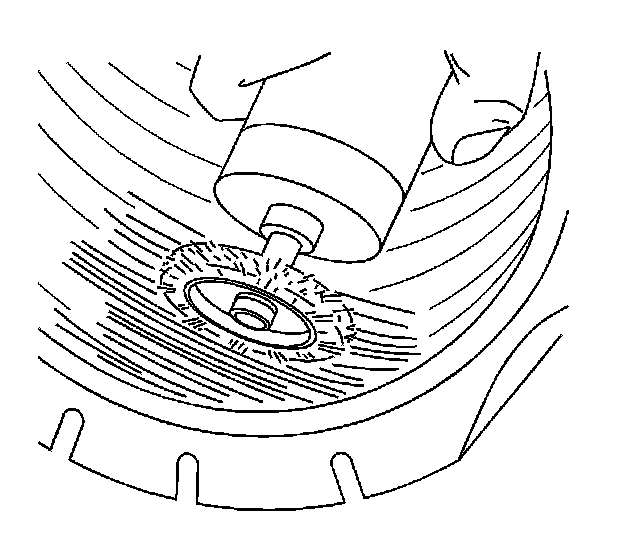 1. To prevent contamination and preserve the outline, buff within the marked area thoroughly and evenly with a low speed buffing tool using a fine wire brush or gritted rasp.