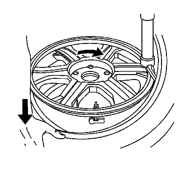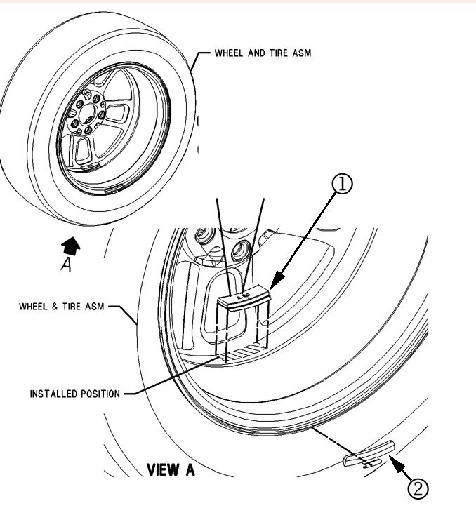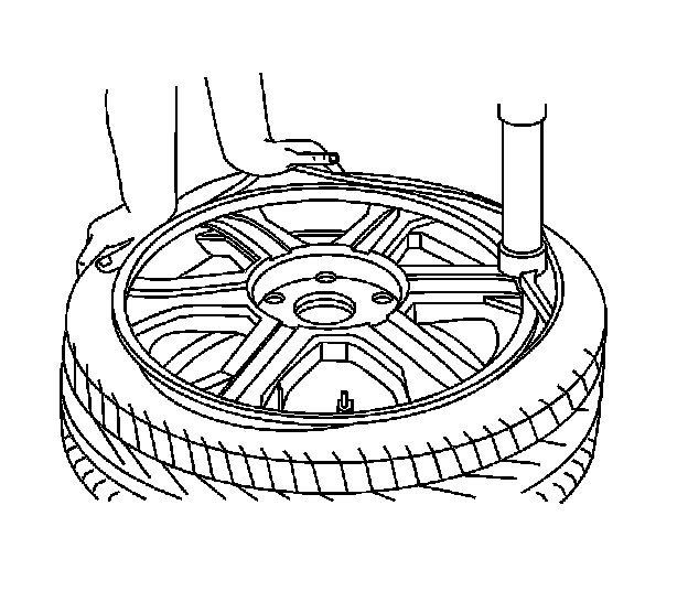 8. If tire/wheel assembly still requires more than 5 oz (141 g) per plane, remove the tire from the wheel, remove all wheel weights and TPM sensor, and check static balance of the wheel.