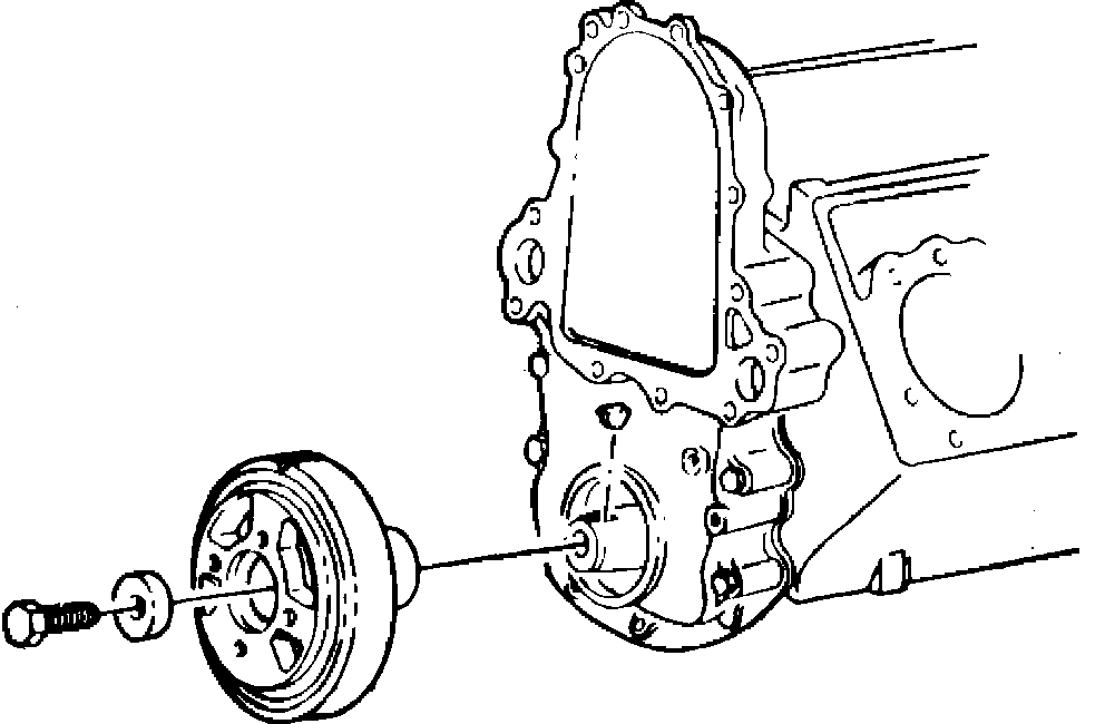 1. Disconnect batteries, then remove crankshaft pulley as described under ``Crankshaft Pulley, Replace.''