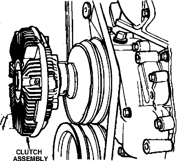 The fan drive clutch, Fig. 1, is a fluid coupling containing silicone oil. Fan speed is regulated by the torque-carrying capacity of the silicone oil. The more silicone oil in the coupling, the greater the fan speed, and the less silicone oil, the slower the fan speed.