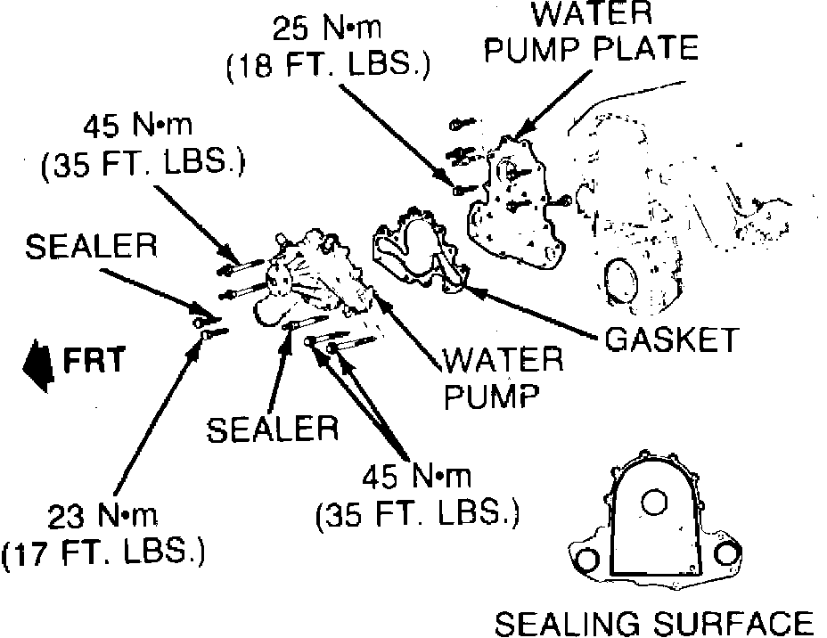 6. Reverse procedure to install. Before installing attaching bolts, apply anaerobic sealer 1052357 or equivalent to sealing surface as shown, Fig. 21. Sealer should be wet to touch before installing bolts. Torque attaching bolts as shown.