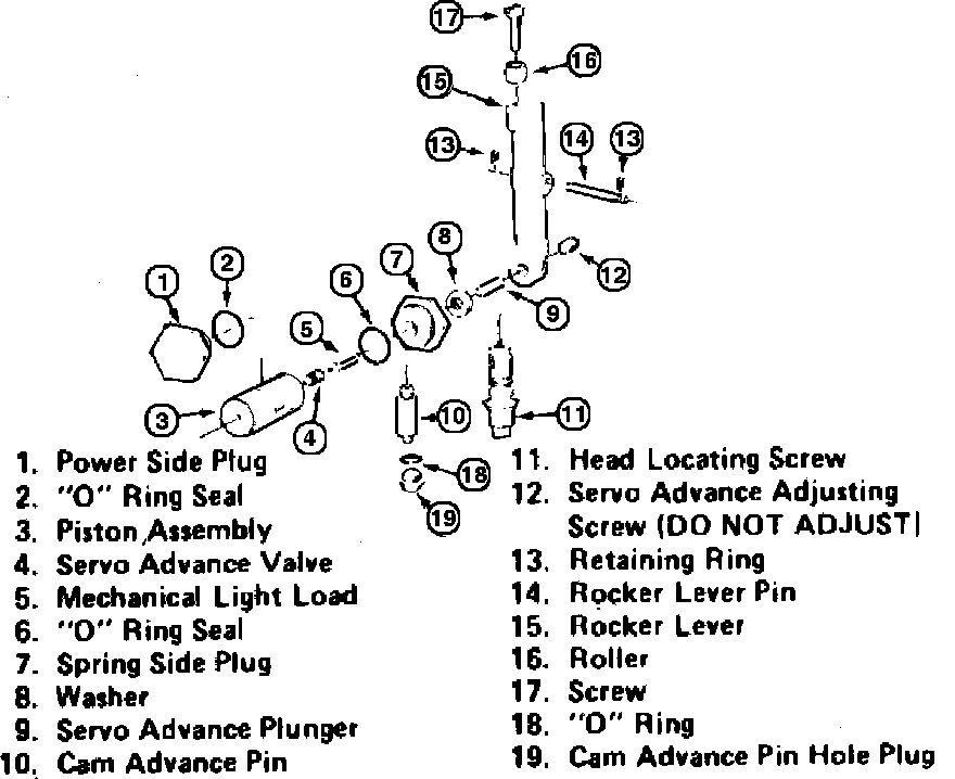 2. Remove spring side advance piston hold plug, plug, piston, spring and slide washer.
