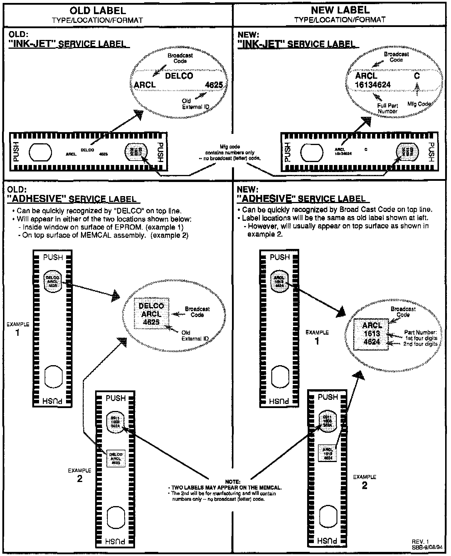 ^ PROMs will always use ADHESIVE labels with the same format as shown for MEMCALs. These changes will become effective on parts manufactured after 10/94.