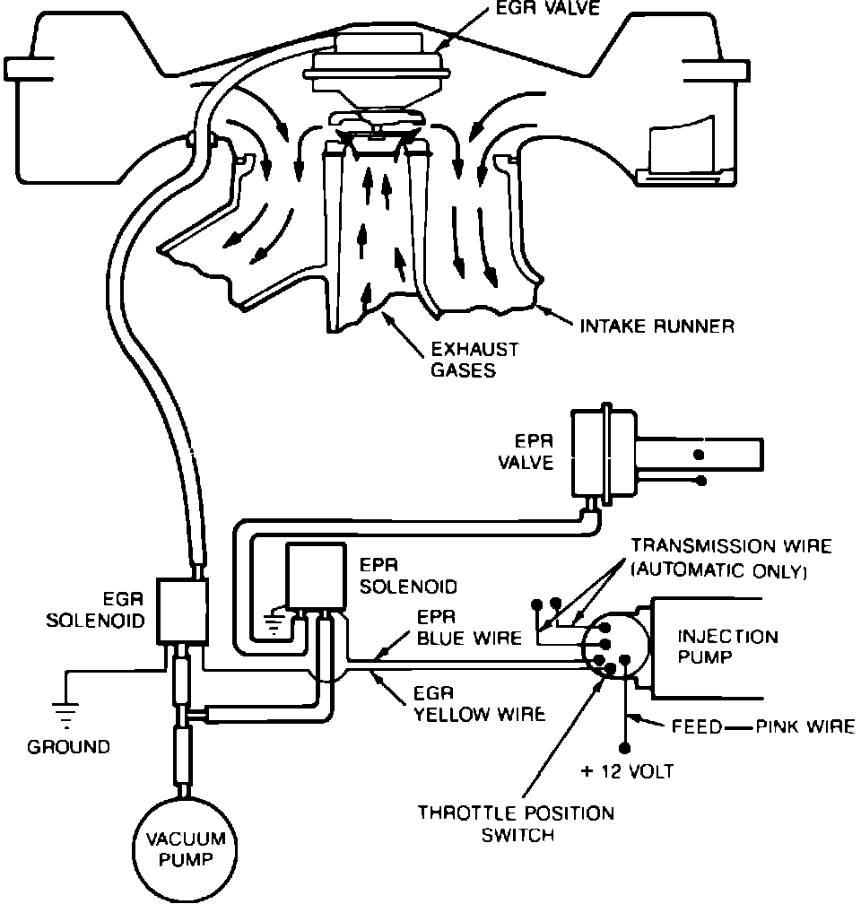 Although control mechanisms vary depending upon year, engine and application, all diesel engines use vacuum from the engine vacuum pump to operate the EGR and EPR valves. Because diesel engines only require exhaust recirculation at smaller throttle openings, the control mechanisms are designed to provide maximum recirculation at idle. Recirculation is progressively reduced, or stopped completely as the throttle opening increases.