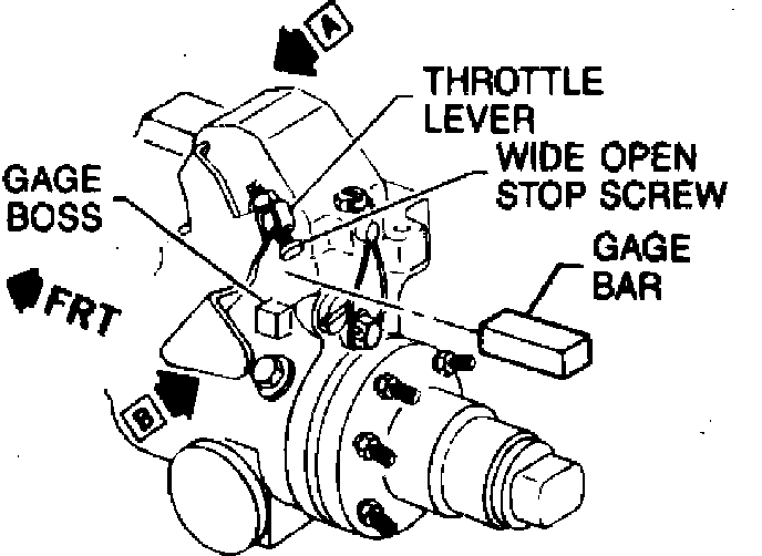 4. Open stop screw on throttle lever to fully open position, then insert 0.646 inch vacuum regulator gage bar between gage boss on pump and stop screw, Fig. 39.