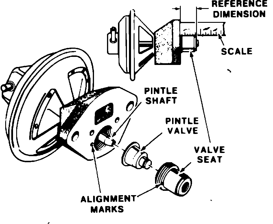 4. Secure EGR valve in bench vise, then remove seat from pintle using suitable wrench. If pintle seat is difficult to remove, rock fore and aft to overcome tightness due to factory staking.