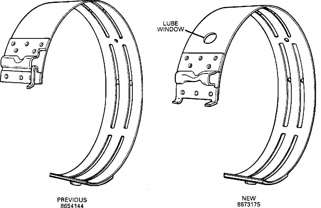 This bulletin covers a new HYDRA-MATIC 4L60 transmission 2-4 band with changes to the apply and anchor brackets, locating tabs, and the addition of a "lube window." The lube window was added to direct lubricating transmission fluid to the band friction material while the band is not applied. Structural changes to the apply and anchor brackets increase their durability and the locating tabs were added to aid in assembly. (See Figure 1.)