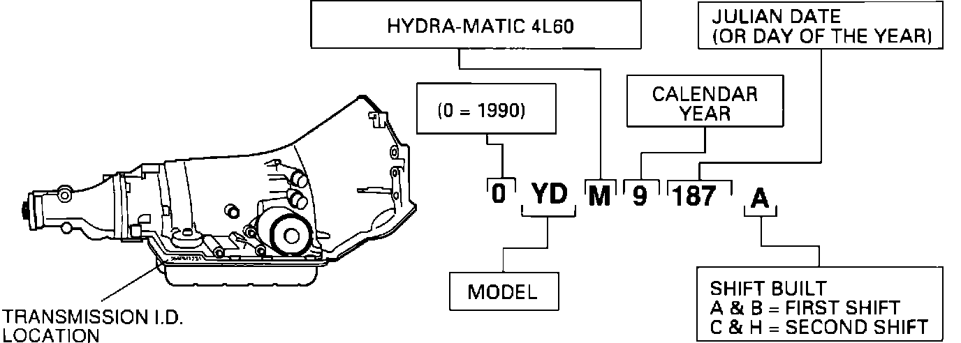 Figure 2 - THM 700-R4/HYDRA-MATIC 4L60 Transmission Identification Information: