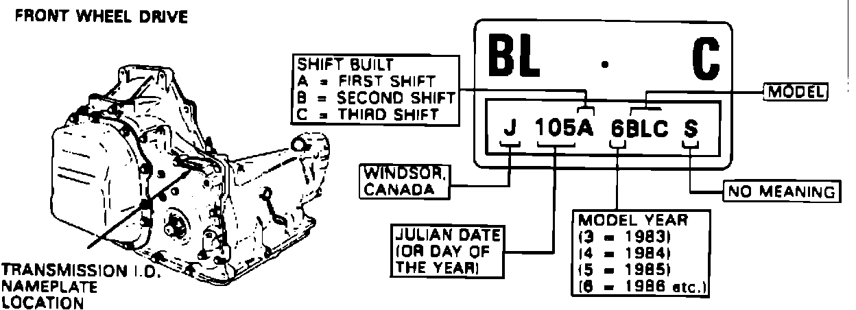 Refer to the following information and illustrations which will help explain all transmission identifications: