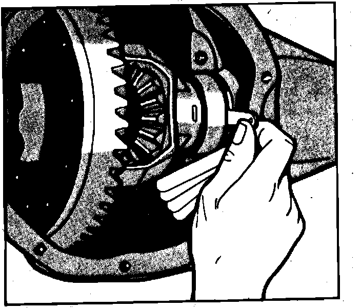 8. The gauge used just before additional drag is felt is correct thickness to obtain ``zero preload.'' By starting with a thin gauge a sense of feel can be obtained for the original light drag caused by the weight of the case, allowing the drag caused by the beginning of preload to be recognized. It will be necessary to work case in and out and to the left in order to insert feeler gauges. Insert feeler gauges as shown in Fig. 14, to ensure accurate measurement.