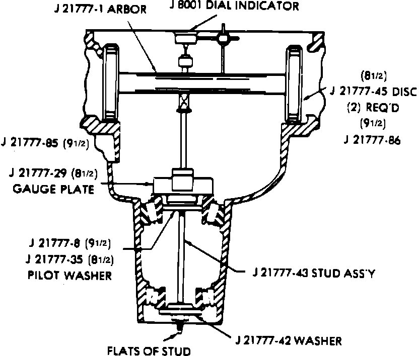 3. Mount depth gauging jig in housing noting the following. Use gauge assembly tool No. J-21777-01, Fig. 9, or suitable equivalent. Follow all tool manufacturer's recommendations when installing gauge assembly.