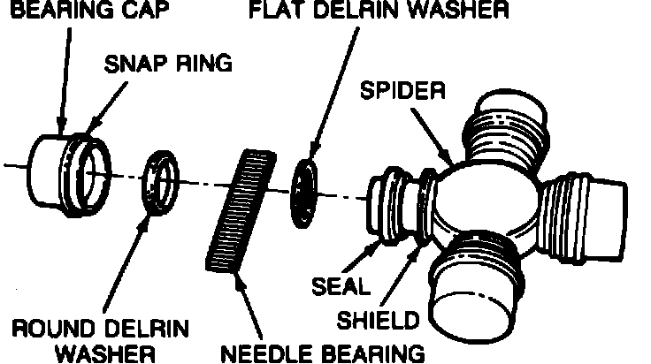 When universal joints are disassembled for lubrication or inspection, and the old parts are to be reinstalled, special care must be exercised to avoid damage to universal joint spider or cross and bearing cups.