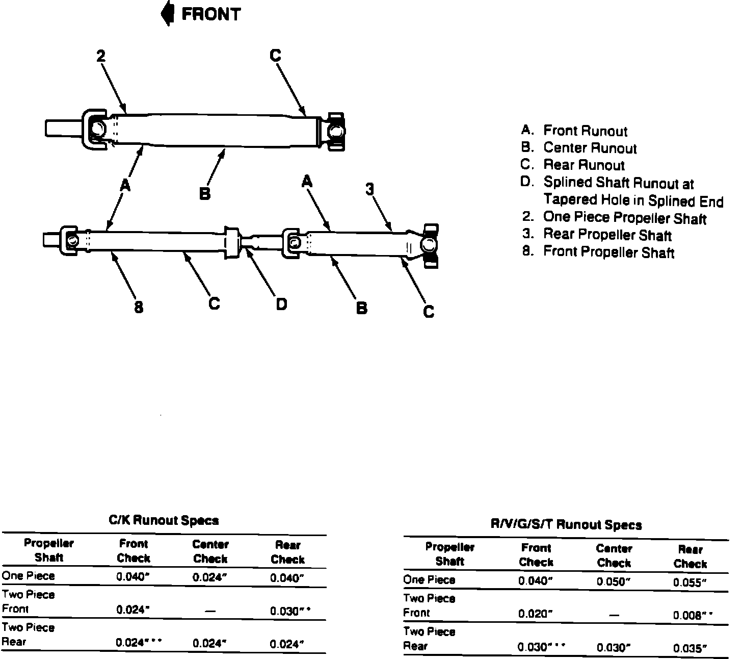 **IMPORTANT: This measurement must be taken with the rear propeller shaft mounted on the front shaft which is within specifications.