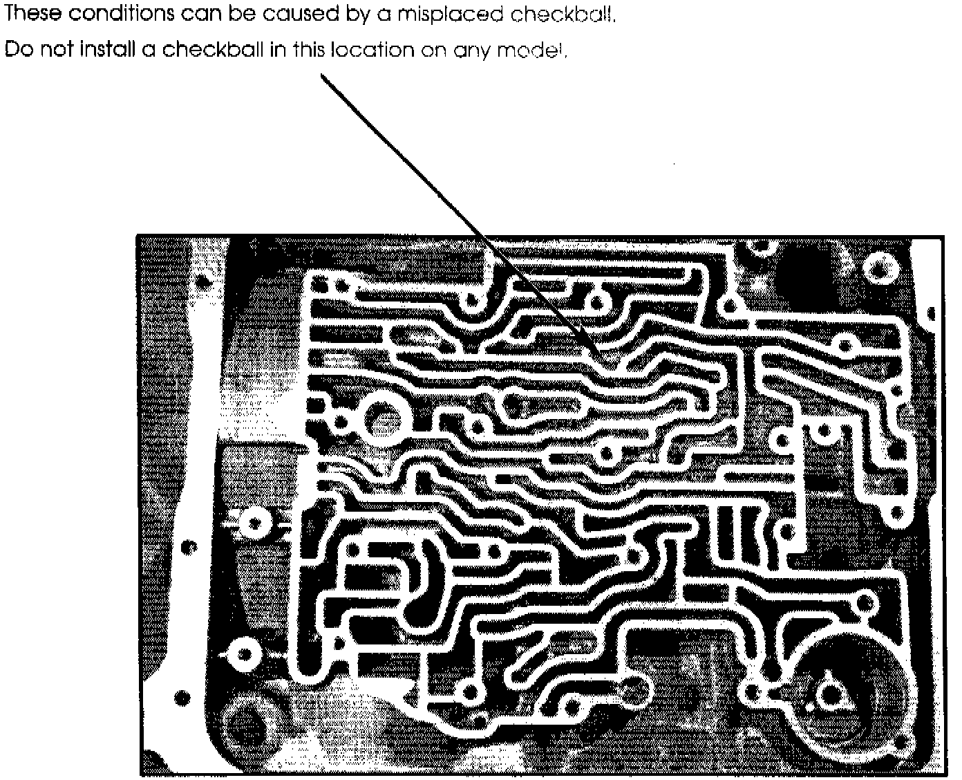 These conditions can be caused by a misplaced checkball. Do not install a checkball in the location illustrated.