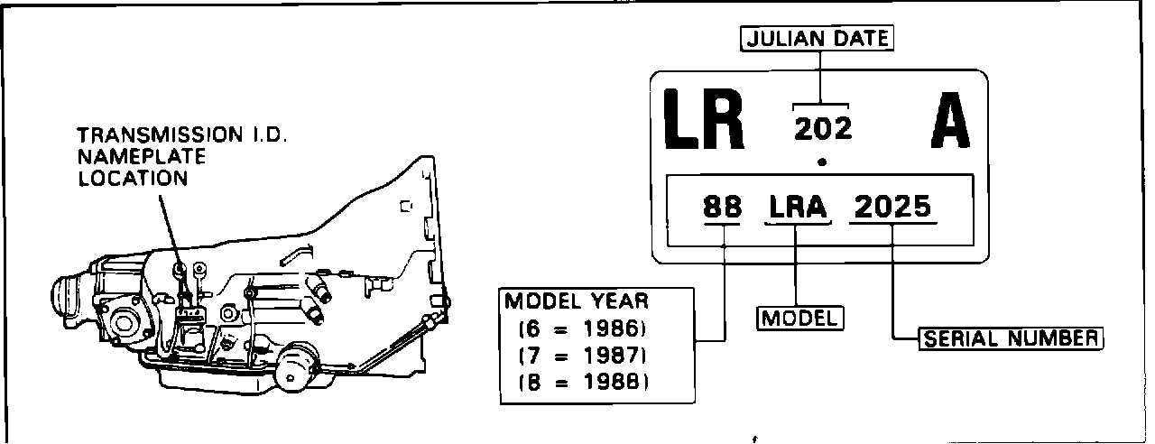 FIGURE 1 - THM 400 TRANSMISSION IDENTIFICATION INFORMATION: