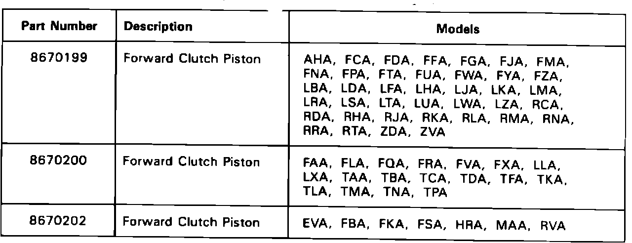 ALUMINUM DIE CAST PISTON - 1988 FORWARD CLUTCH APPLICATION CHART: