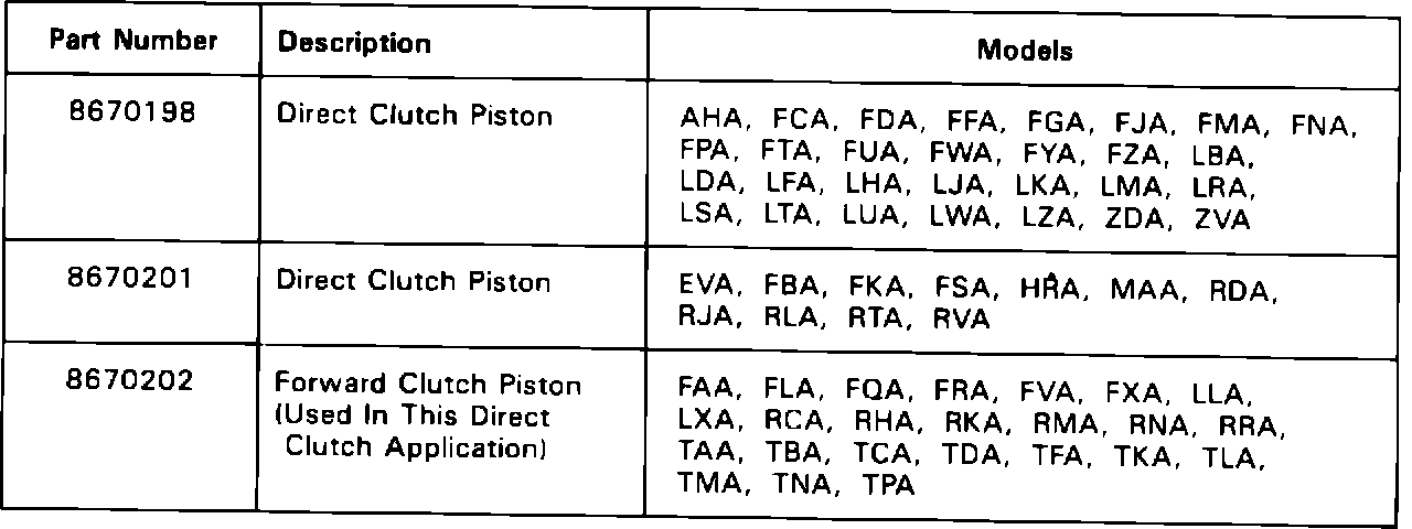 ALUMINUM DIE CAST PISTON - 1988 DIRECT CLUTCH APPLICATION CHART: