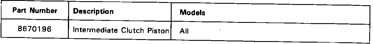 ALUMINUM DIE CAST PISTON - 1988 INTERMEDIATE CLUTCH APPLICATION CHART: