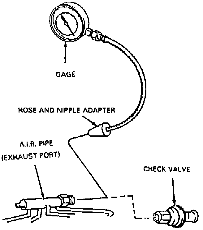 1. Remove the rubber hose at the exhaust manifold A.I.R. pipe check valve. Remove check valve.