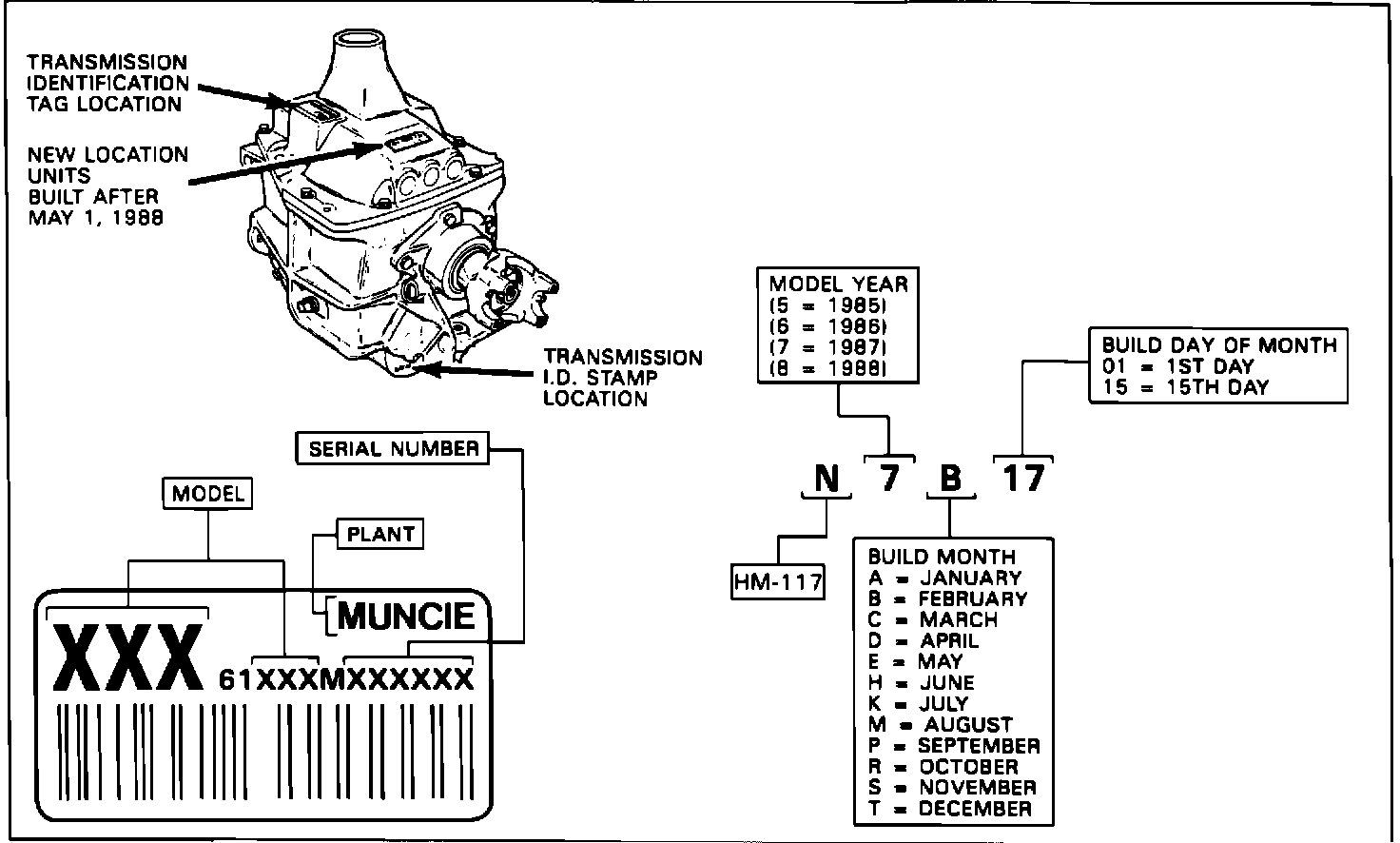 FIGURE 2 - HM-117 TRANSMISSION IDENTIFICATION INFORMATION CH/SM 465 RPO M20 - MC8:
