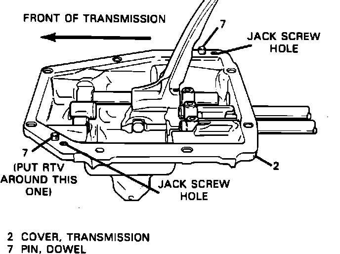 On models built before July 6, 1987 with a dowel pin hole that goes through the inside of the case, put RTV silicone specified in Service Parts Information around the edge of the dowel pin (7) that is on the cover (2) to prevent leakage (Figure 3).