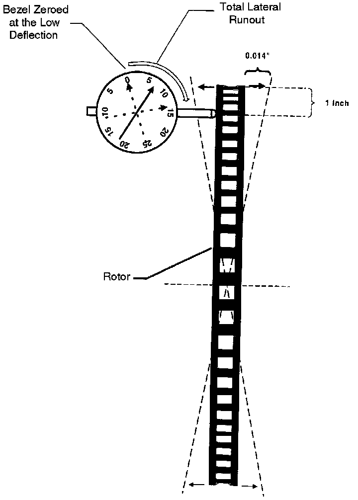 5. Again rotate the rotor at least one complete turn and observe the needle deflection. Total needle deflection will equal lateral runout.