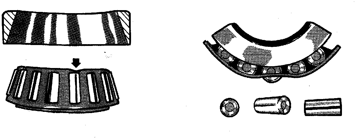 - Cup the bottom of the bearing cage (the wider end) into the palm of your hand forcing grease up through the cage. Repeat the procedure until the new grease is pushed out of the top of the cage.