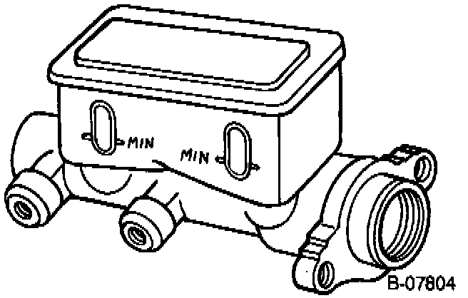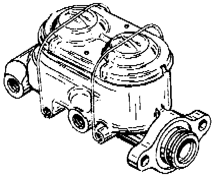 Other models use a master cylinder that operates the same as the conventional master cylinder, but also incorporates a quick take-up feature in the rear chamber to reduce excessive pedal travel which may result from increased fluid displacement required to move the low drag caliper piston out against the rotor. The quick take-up uses a spring-loaded ball check valve to hold pressure in the large diameter rear chamber when the brakes are first applied. At initial application, movement of the rear piston causes fluid to be displaced forward past the primary piston seal into the primary high pressure chamber. At a specified pressure, the ball unseats and fluid from the large rear bore is displaced past the bore into the reservoir. When the brake pedal is released, suction generated in the large bore chamber replenishes its fluid supply by drawing fluid from the reservoir around the quick take-up lip seal and through a small bleed orifice in the ball seat.