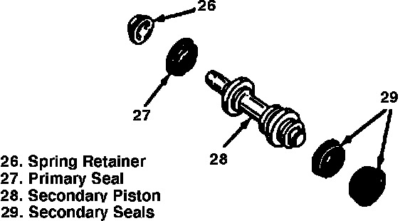 4. Install primary seal over end of secondary piston, with flat side of seal against flange of piston.