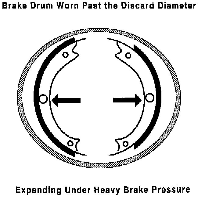 - Drums which are worn past their "Discard" thickness are prone to expanding outwards into an oval shape during heavy braking. This drum expansion results in additional brake pedal travel.