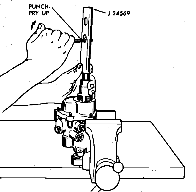 c. Place tool No. J-24569 around pedal rod as shown in Fig. 3, then using a suitable punch, shear pedal rod retainer and remove pedal rod.